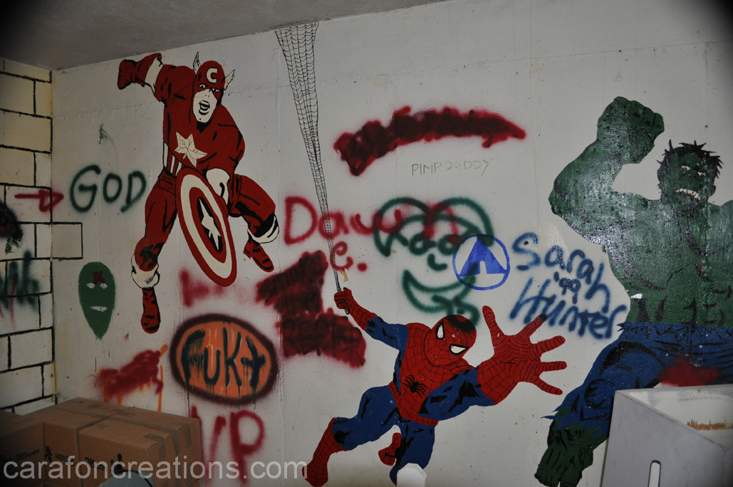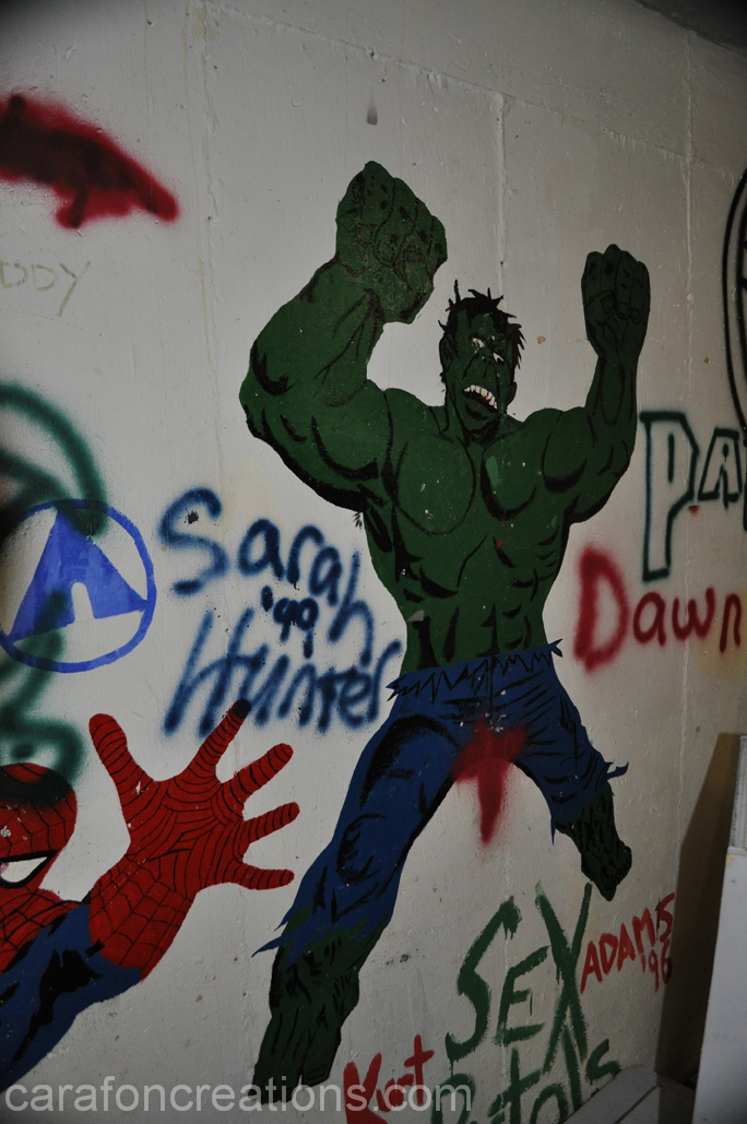 It certainly was not a treat to see the damage and tagging that was done to these pictures in the years since they were done. It was heart breaking that someone or some people could and did this damage. The undamaged pictures remain in the past, only the tagged walls remain now.