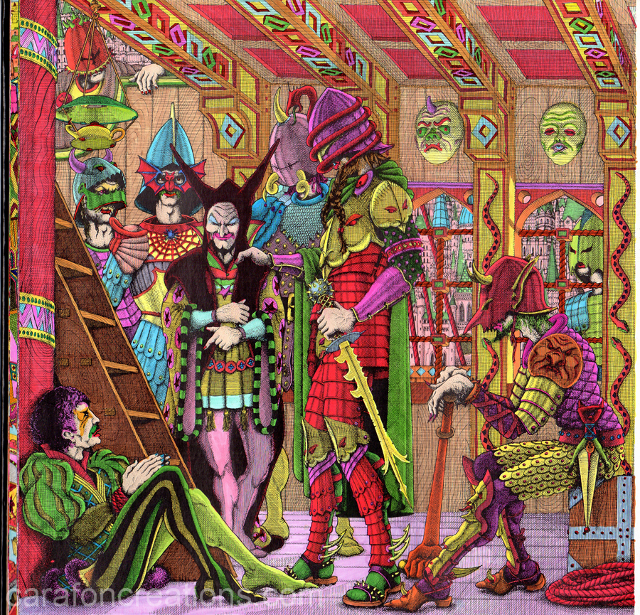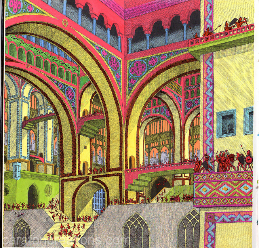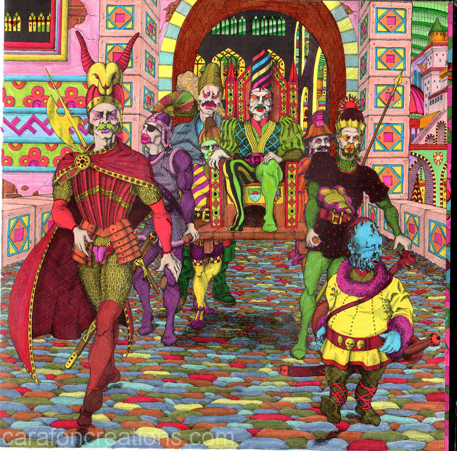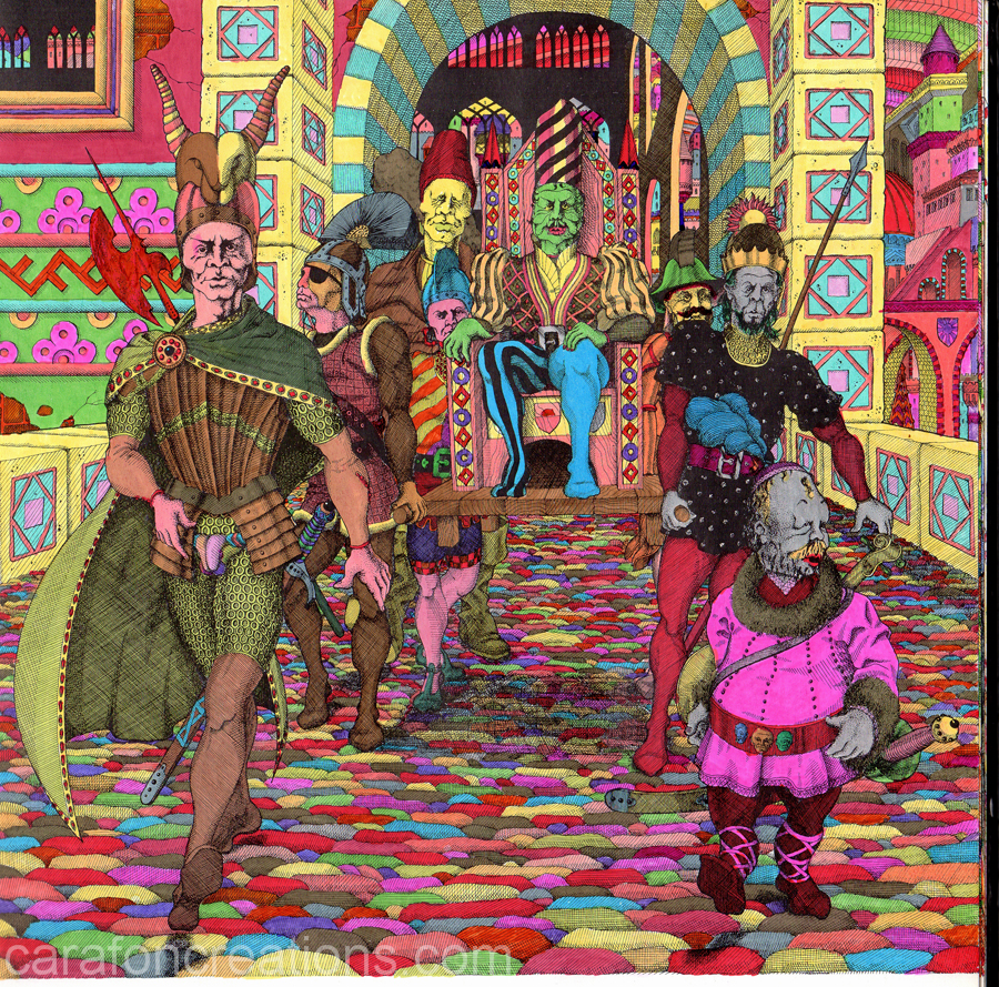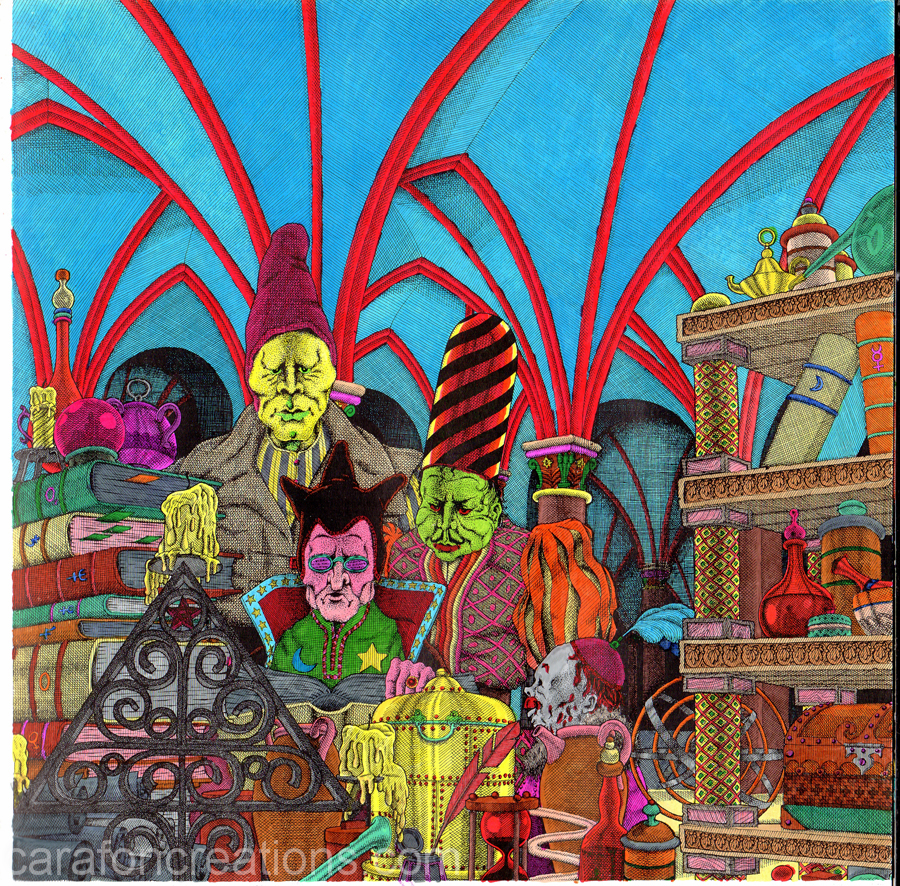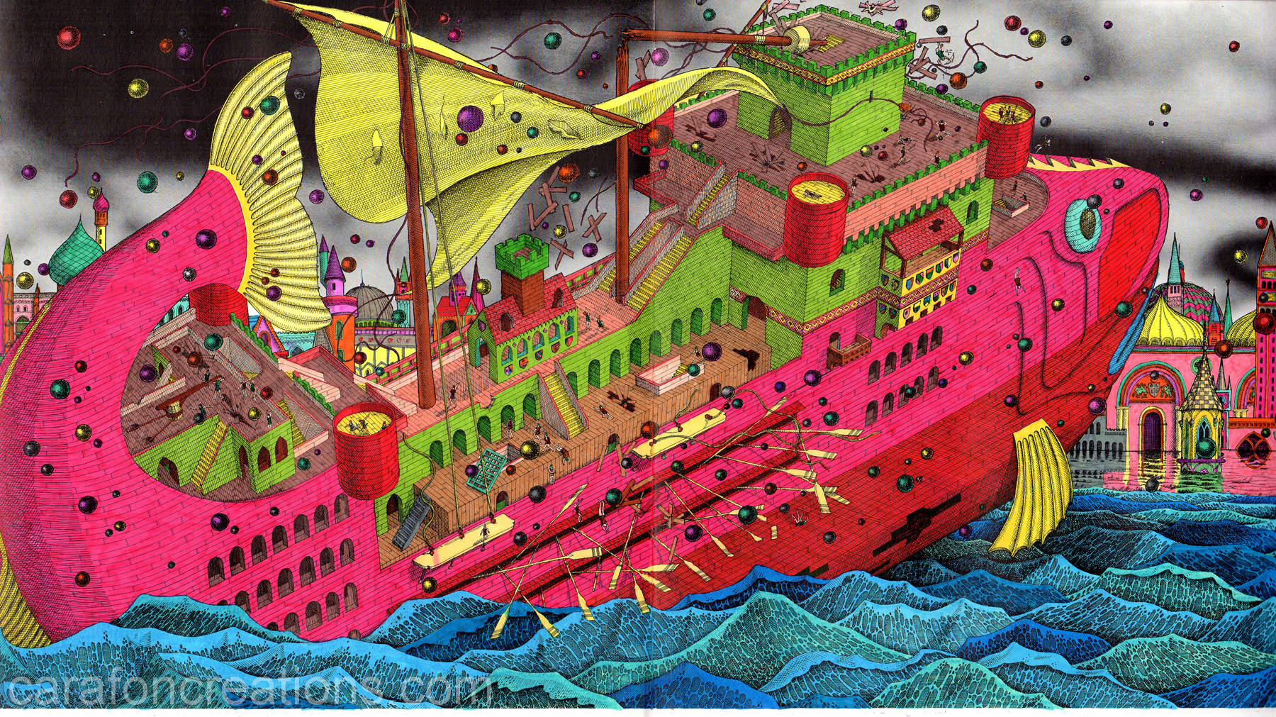In 1982 while laid off from INCO, I found this book in the bargain bin (for $.50) at our local Woolworth’s store. When I got it home and was looking at it I thought it would make a great colouring book. I bought some magic markers (plus some more books) and began to colour it. The results were turning out really great so I let some others know about it, they went out and bought the books with some markers to do the same. As we did the work it became apparent that we each had an individual style and that it was going to take some time to finish. We thought that when we had completed it we would get together to have a celebration and an exhibition for ourselves. It never happened, but recently my brother Marc and I were interviewed by CBC Sudbury about the book. I thought I would include the scans of our work on this site, hopefully we will be able to get scans of some of the other books. You will see the differences between our interpretation and also the evolution of the work as we spent more time doing it.