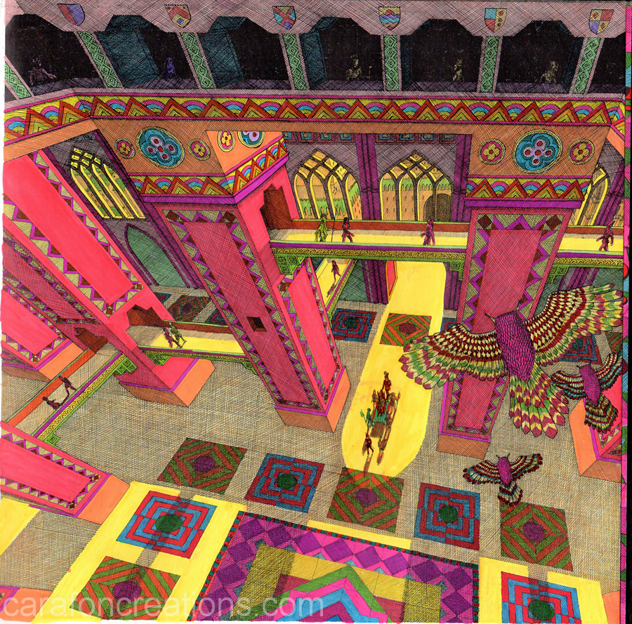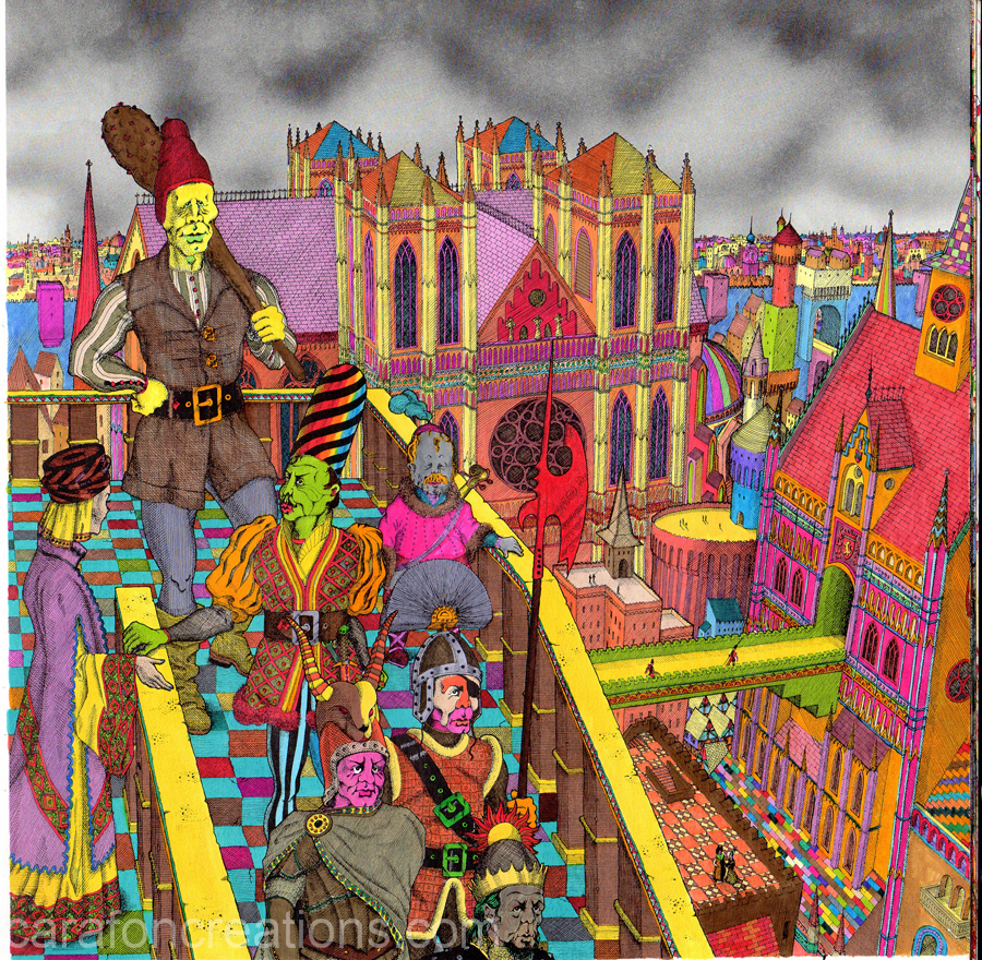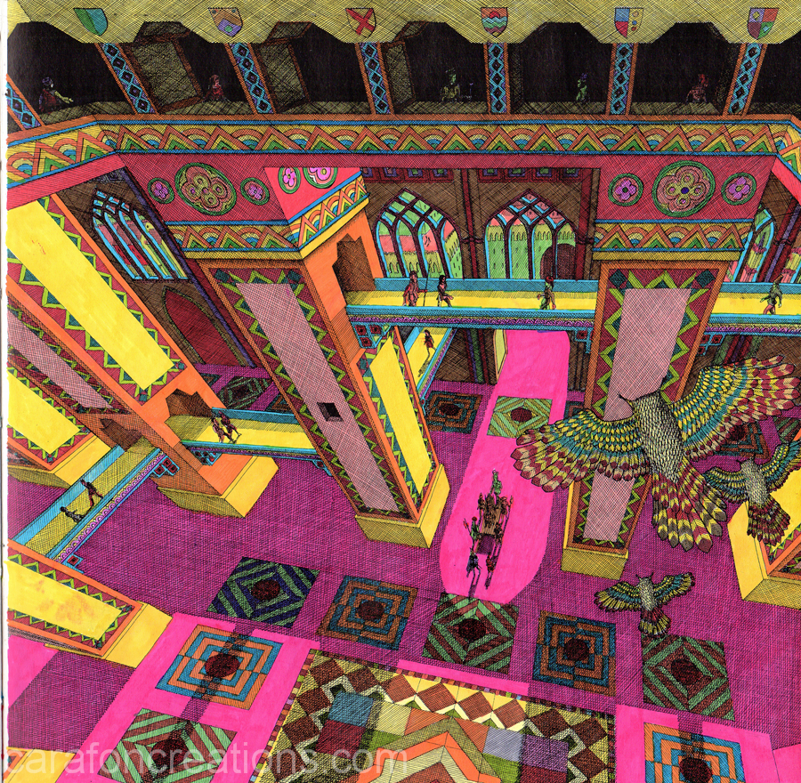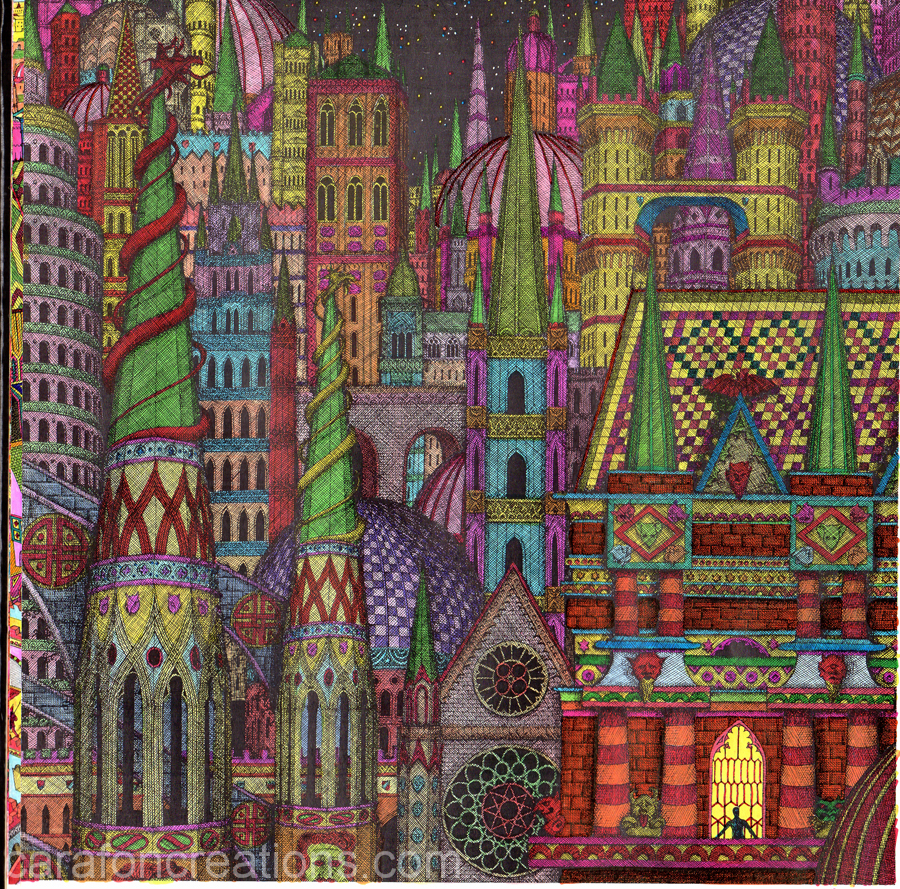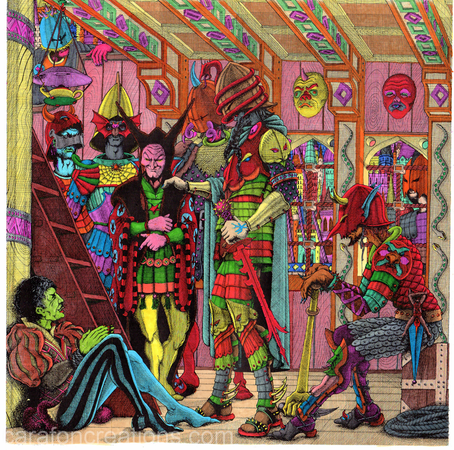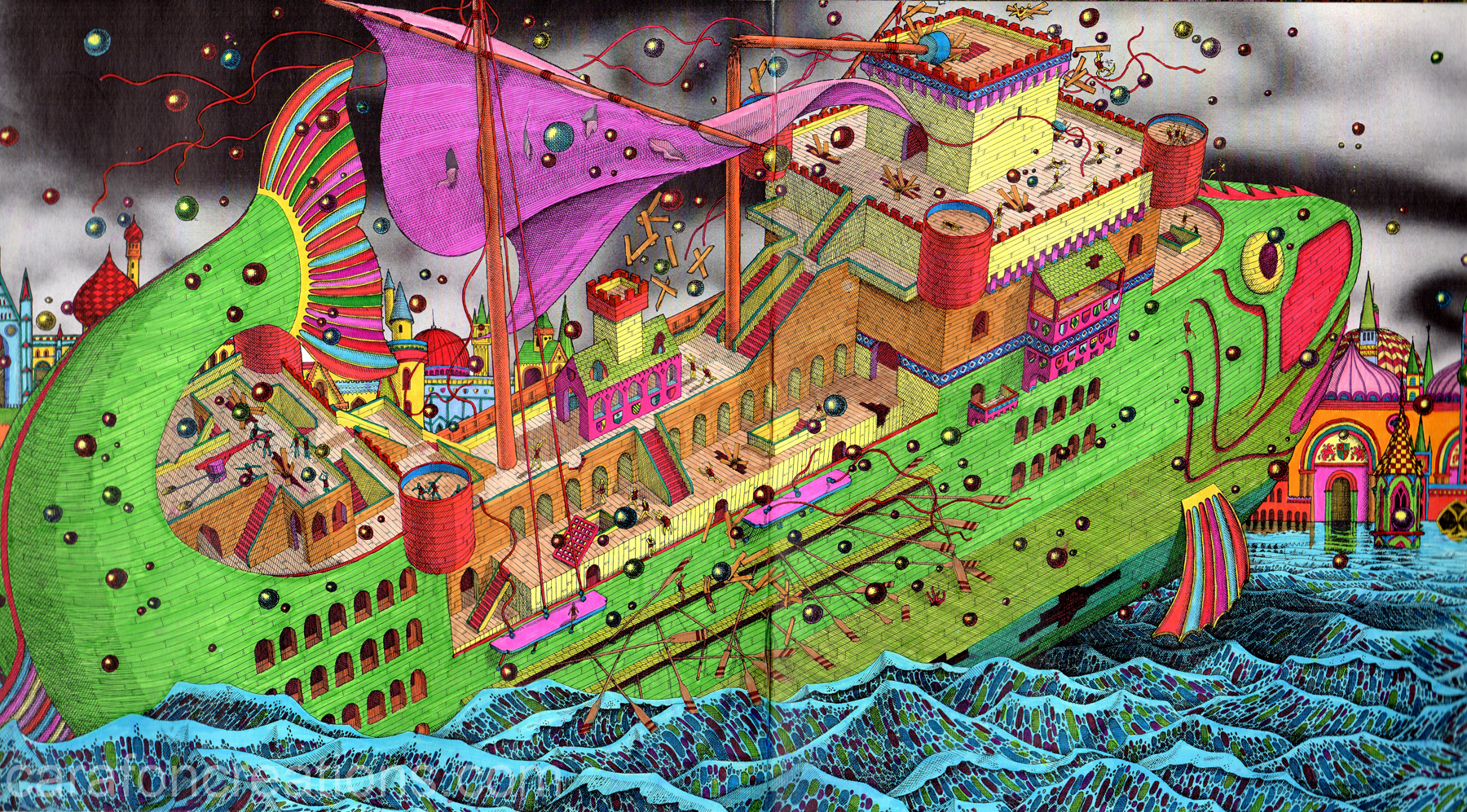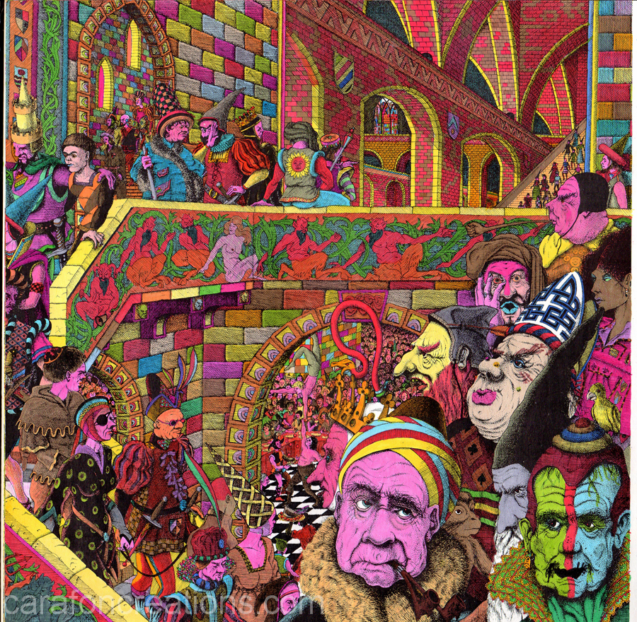 In 1982 while laid off from INCO, I found this book in the bargain bin (for $.50) at our local Woolworth’s store. When I got it home and was looking at it I thought it would make a great colouring book. I bought some magic markers (plus some more books) and began to colour it. The results were turning out really great so I let some others know about it, they went out and bought the books with some markers to do the same. As we did the work it became apparent that we each had an individual style and that it was going to take some time to finish. We thought that when we had completed it we would get together to have a celebration and an exhibition for ourselves. It never happened, but recently my brother Marc and I were interviewed by CBC Sudbury about the book. I thought I would include the scans of our work on this site, hopefully we will be able to get scans of some of the other books. You will see the differences between our interpretation and also the evolution of the work as we spent more time doing it.